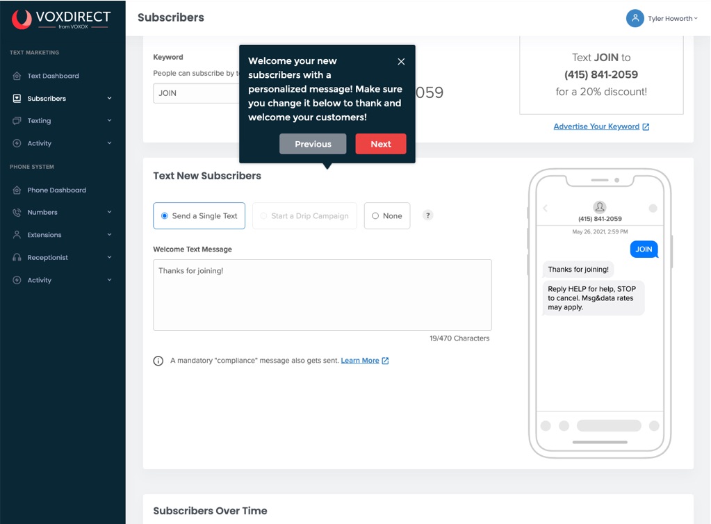 He currently uses two separate services for text marketing and a business phone system. The problem with this is: