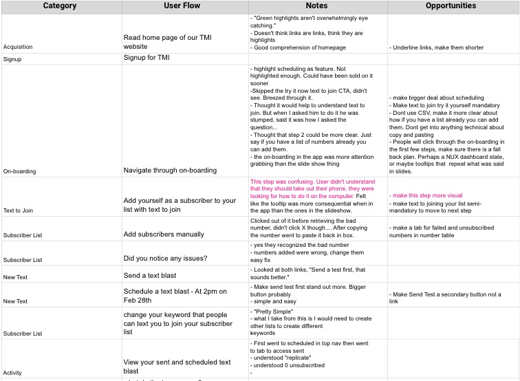 I used an analytics tool called Mixpanel to see which features were being used frequently and correlated with high retention. We learned that customers who sent a blast text were likely to send more and continue using our service. So we focused our onboarding to channel customers into this “aha” moment.