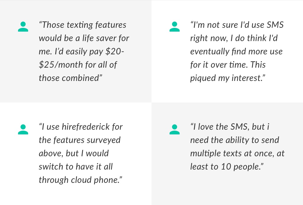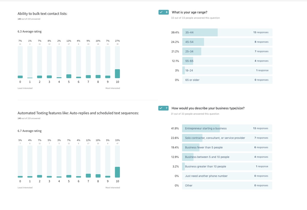 We started the project by sending out a survey to users of our original product, CloudPhone. We asked them if they were interested in bulk/automated texting tools. Then we asked how they would use it.